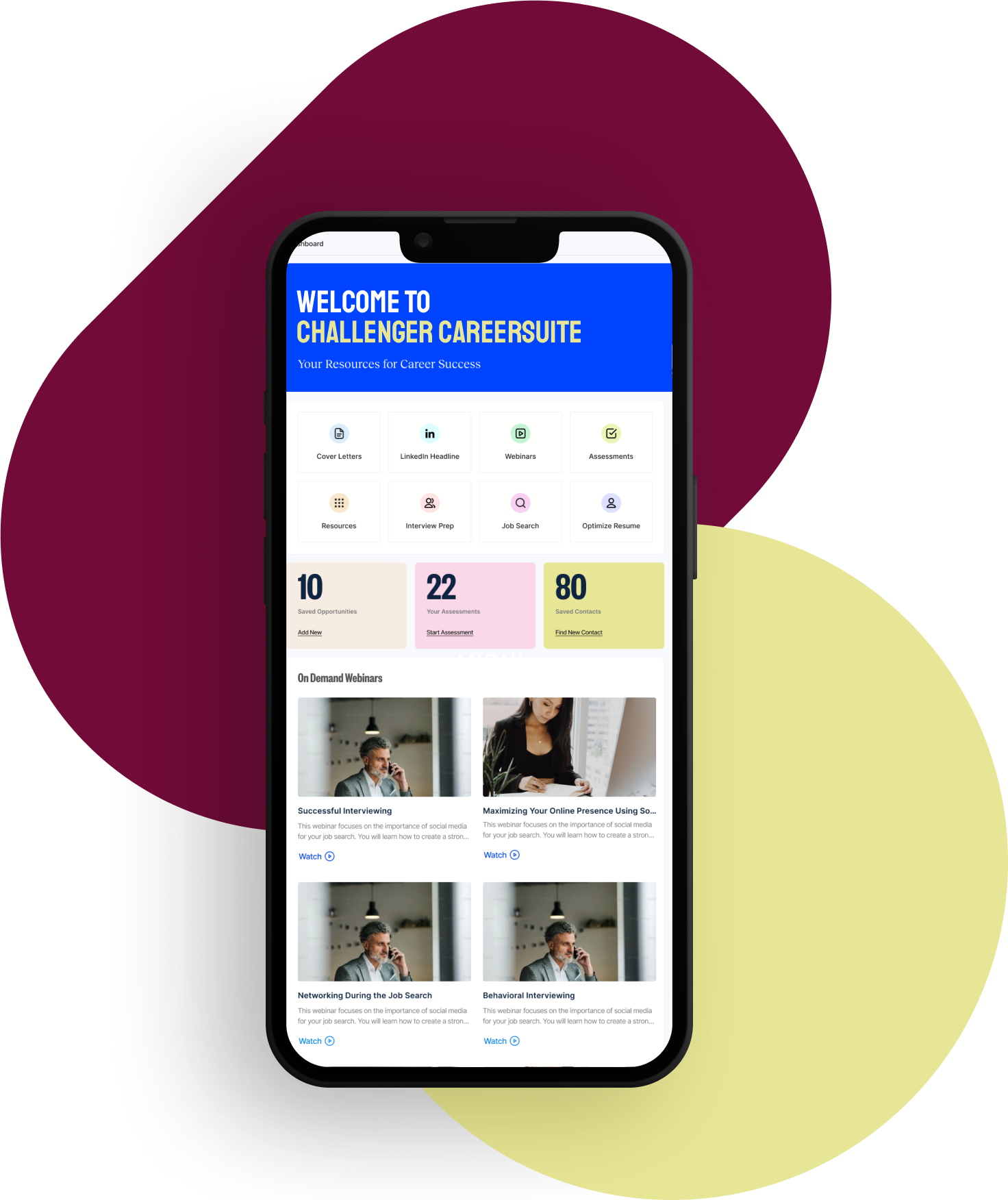 With our outplacement programs, job seekers get access to Challenger CareerSuite, powerful job search technology platform available.